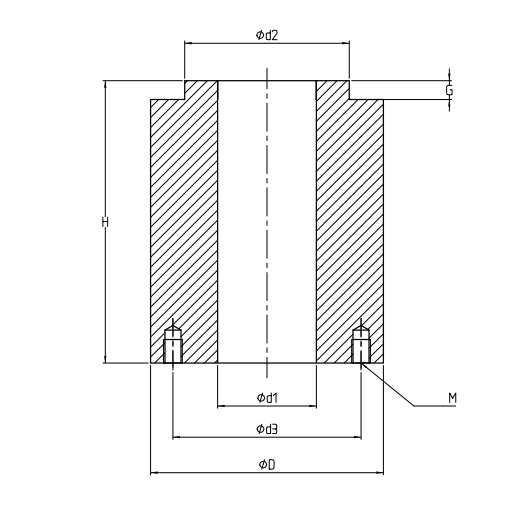 型號(hào) | 量程(kN) | 量程(t) | d1 | d2 | d3 | D | G | H | M |