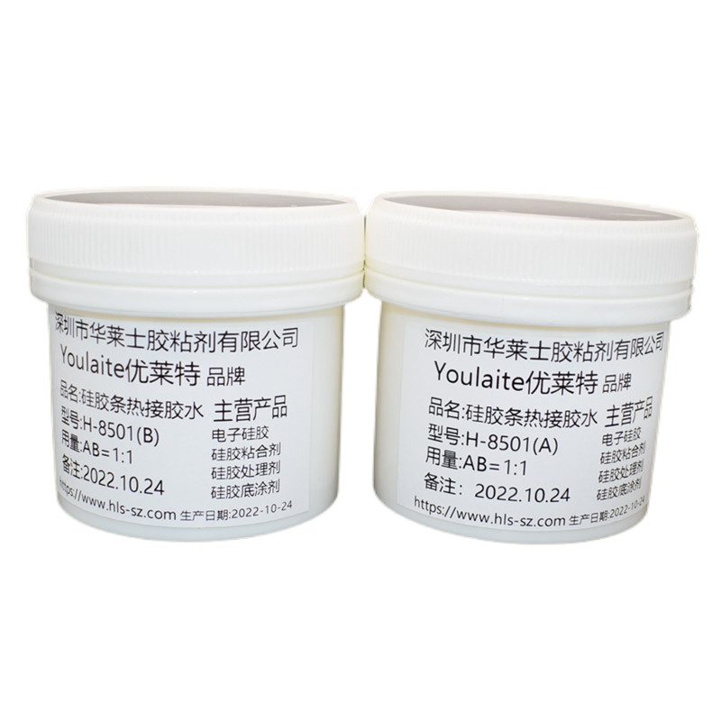 H-8501AB為加熱快速固化的雙組份加成型液體硅橡膠膠水,固化后與各種基材具有較好的粘接性。膠料在固化前具有較好的流支性;固化后具有優(yōu)異的電氣絕緣性,應用于硅膠粘接硅膠(硅膠管、硅膠條對粘)、各種電子元器件的絕緣、防潮、減震密封或粘結。