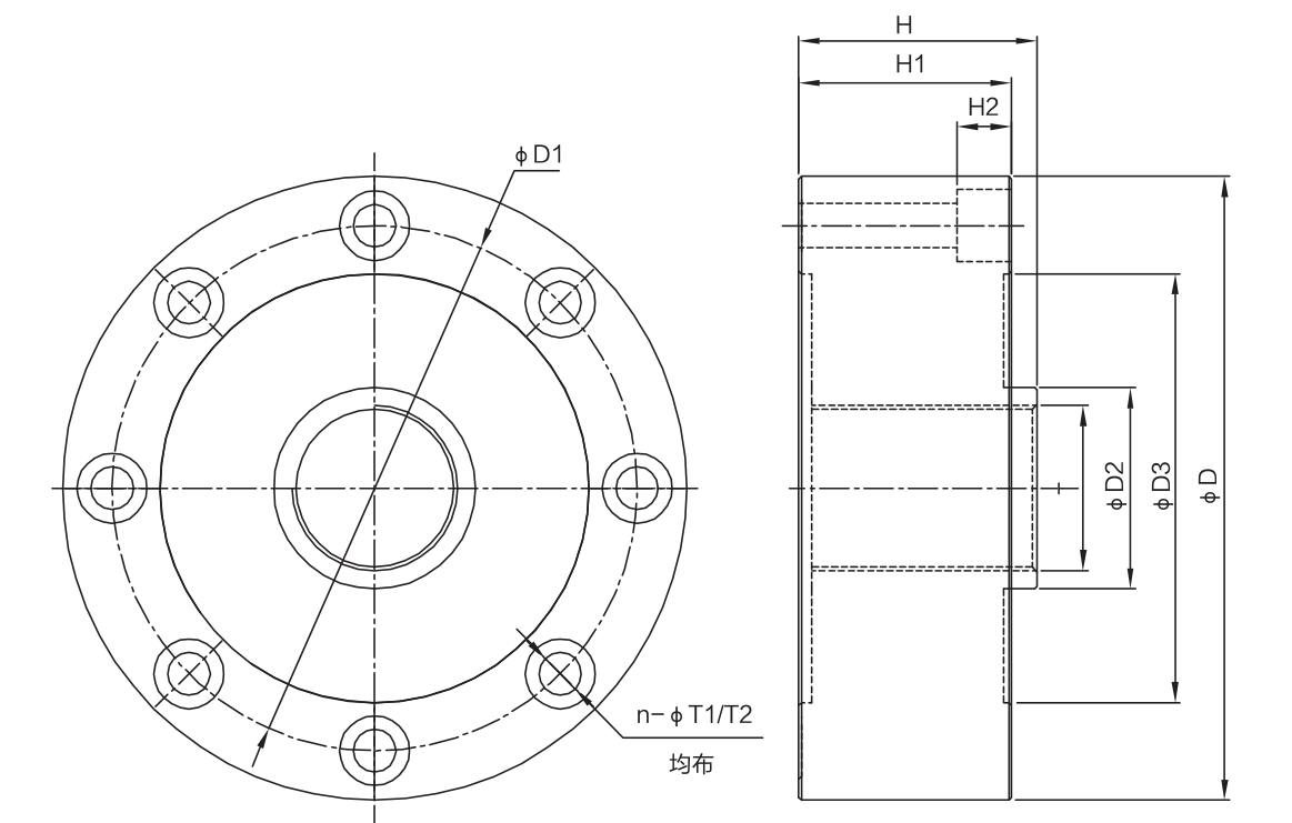 量程(kN) D D1 D2 75 H H1 T T1 T2 n H2 5-50 mm 105 89 32 75 37 34 M16x1.5 7.5 10.5 8 7.2 100-250 mm 120.6 101.8 39 83 48 41 M32x1.5 8.5 14 8 10.5 300 mm 141 116.8 50.4 97 57 50.8 M40x1.5 11 18 8 11 |