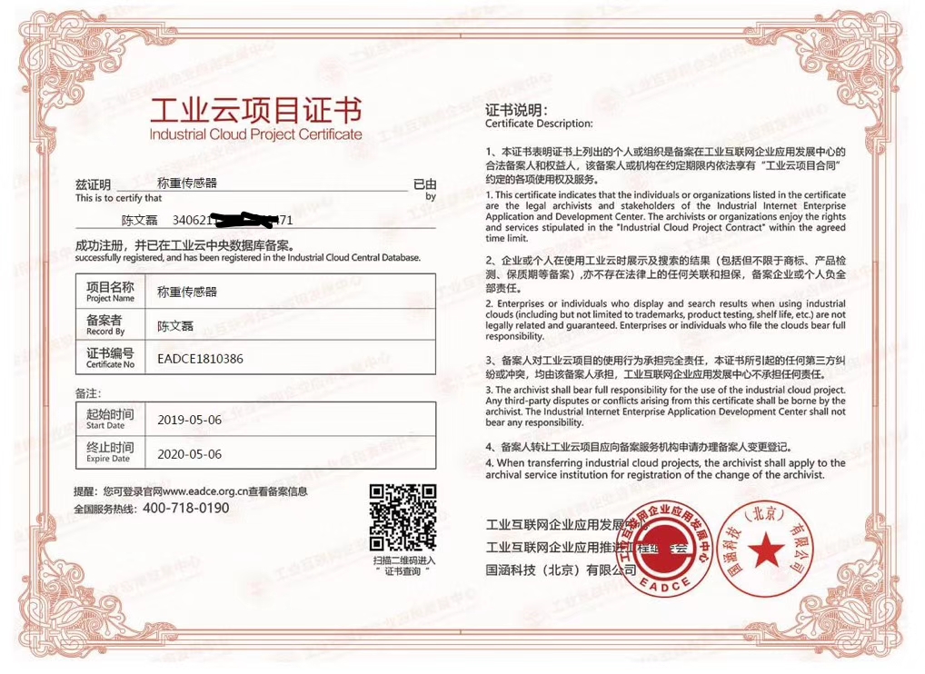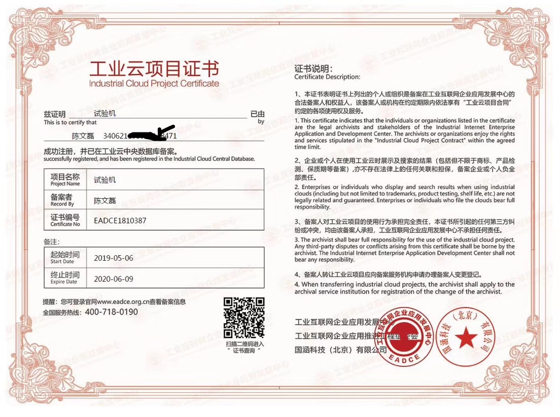 國家商務部工業云項目證書 工業互聯網企業應用發展中心